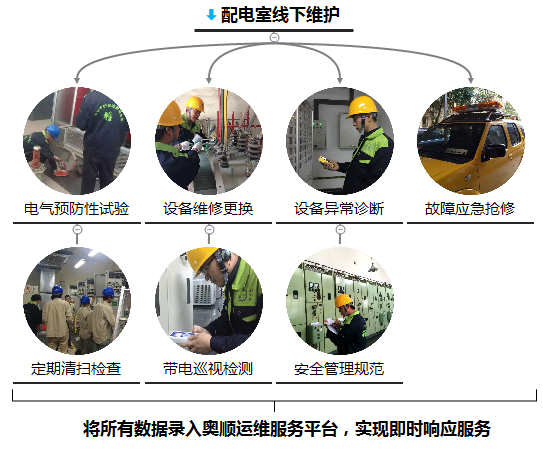 電力用戶配電室內(nèi)所使用的各類電力設(shè)備(包含:高壓開關(guān)柜、低壓開關(guān)柜、電容柜、變壓器、電線電纜、儀器儀表、綜合保護等),需要日常定期的維護,隨著設(shè)備不斷老化,人員成本日益增加,那么就需要更加專業(yè)的運維團隊,提高效率降低成本。
